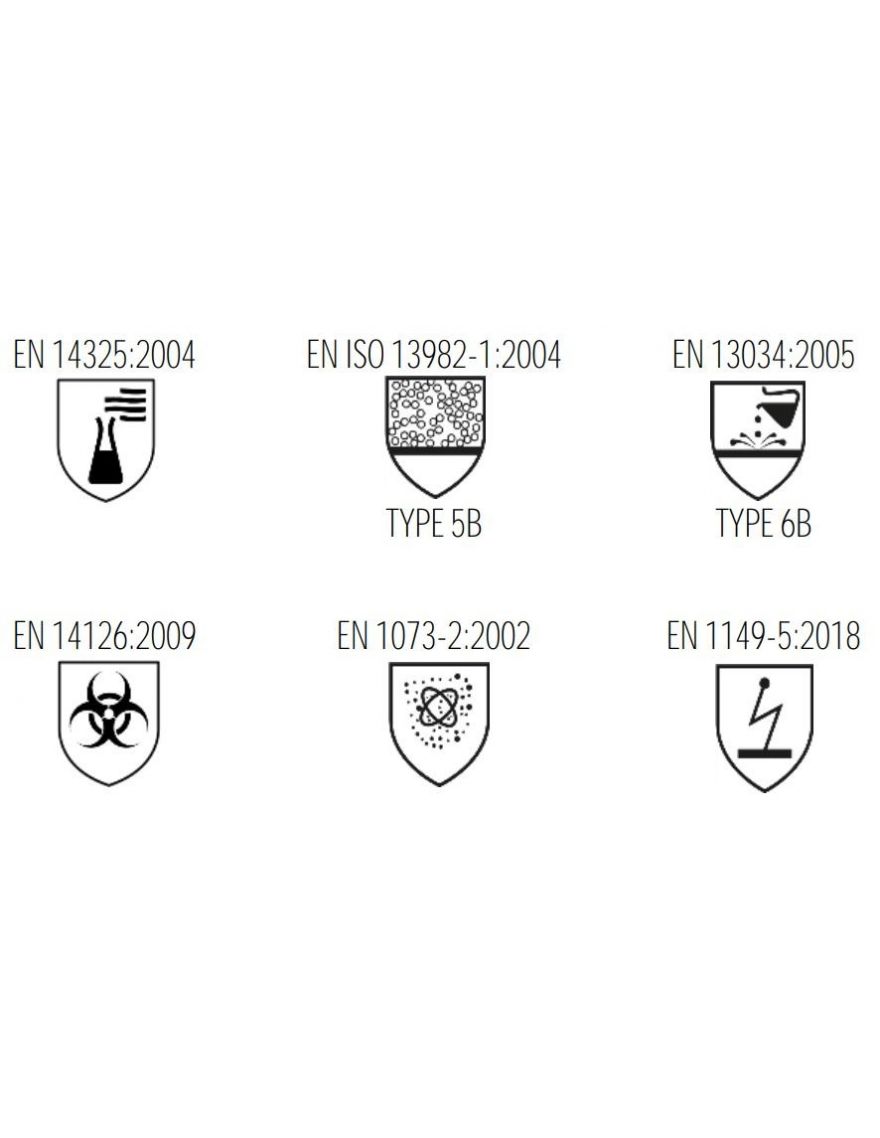 Cette combinaison offre une protection contre les particules chimiques solides en suspension dans l'air (Type 5) et une protection limitée contre les pulvérisations liquides (Type 6). Idéale pour les activités de désamiantage, peinture industrielle, vernis, peinture automobile, manipulation de produits chimiques, dépollution, nettoyage de sites, industries des plastiques, traitements agricoles, pesticides, police technique et scientifique, bureau de recherche, services de première urgence, salles blanches, industries pharmaceutiques, industries électroniques, élimination de déchets, assainissement, abattoirs, industries agro-alimentaire, décapage, sablage, services médicaux,...